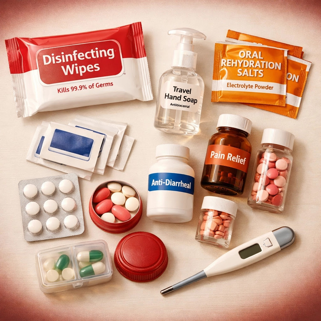 - Oral rehydration packets (like Pedialyte or Drip Drop: they help replace electrolytes if you get sick)