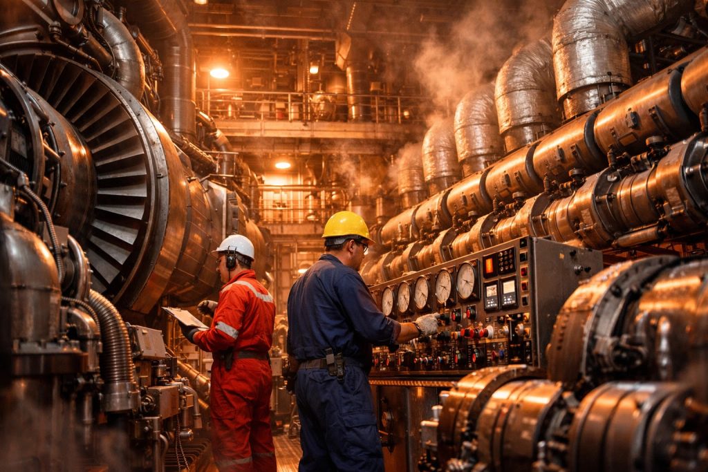 Down in the engine room, the engineering team is running pre-departure tests. They're firing up main engines (if they've been in standby mode), testing steering mechanisms, checking propulsion systems, and monitoring power loads as various ship systems ramp up for sea.